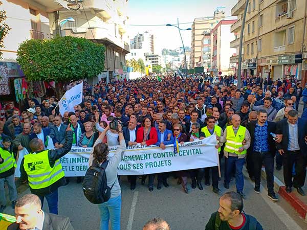 Des milliers de personnes, plus de 100 000 pour les organisateurs et quelques 20 000 selon les estimations des services de sécurité, venus de plusieurs régions du pays notamment d’Alger, de Tizi Ouzou, de Setif, et de Bouira, ont marché aujourd’hui à Bejaia pour dénoncer le blocage des projets du groupe Cevital d’une part et exiger des projets de développement local créateurs d’emplois productifs et durables.