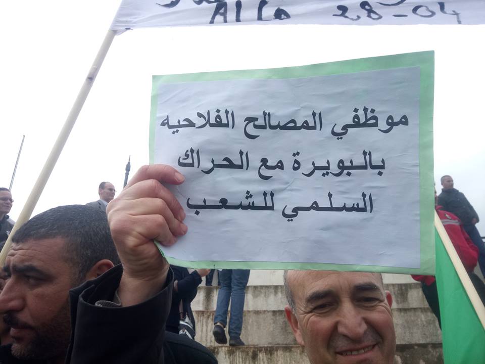 Les agriculteurs étaient munis également de grandes banderoles sur lesquelles étaient inscrits « Les agriculteurs adhérent pleinement au mouvement populaire pour un avenir meilleur de notre nation », « Que tombe la maffia du foncier agricole ! », « Les agriculteurs contre le système pourri. Dégage », et « Non au système corrompu. Non aux malfaiteurs qui pillent l’Algérie ».