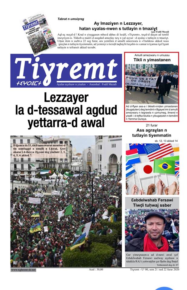 « Le collectif de la rédaction considère l’interdiction de Tighremt comme un double coup dur contre la liberté de la presse et d’expression, et la promotion de la langue amazighe en Algérie » a souligné la rédaction du journal dans un communiqué diffusé hier.