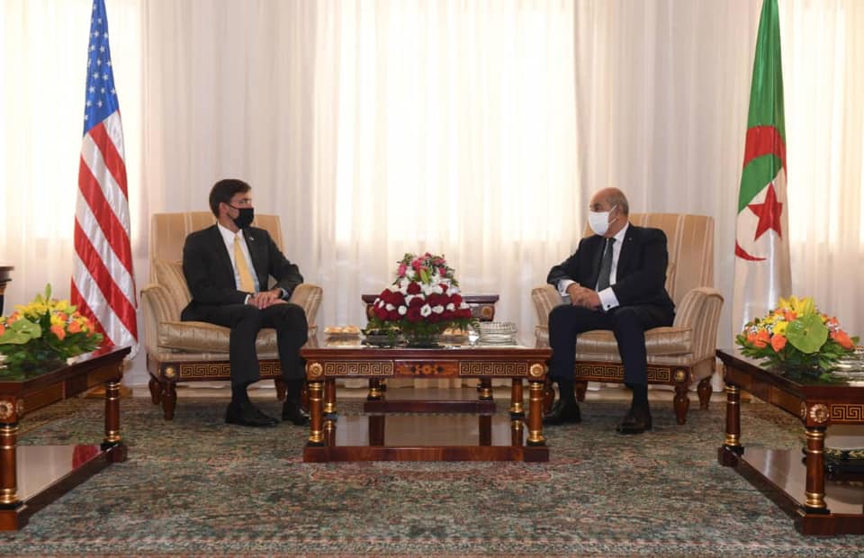 « Le Président de la République, Abdelmadjid Tebboune a reçu, ce matin, Mark Thomas Esper, Secrétaire à la Défense des Etats-Unis d’Amérique, qui effectue une visite de travail en Algérie », lit-on dans le communiqué.