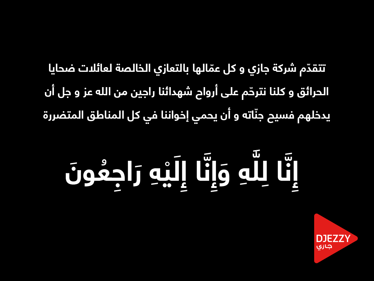 Djezzy tient également à présenter ses condoléances aux familles des victimes en les assurant de son soutien et de sa mobilisation en ces pénibles circonstances.
