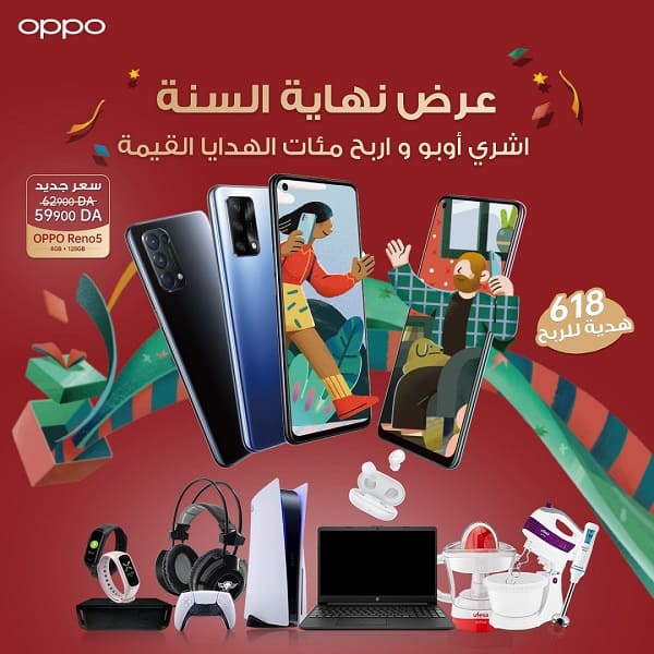 A l’occasion de cette fin d’année, OPPO n’arrête pas de combler ses clients qui souhaitent renouveler leurs équipements pour entamer l’année 2022 sous de meilleurs auspices, avec notamment la baisse du prix de son smartphone phare le Reno5 qui passe de 62 900 DA à 59900 DA, mais surtout une baisse de prix qui peut aller jusqu’à -22% pour ses objets connectés comme, à savoir les écouteurs Bluetooth et bracelets connectés.