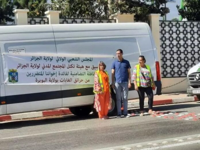 La caravane apporte des aides sous forme de denrées alimentaires et de literies destinées aux familles résidant à Lakhdaria, la région la plus touchée par les incendies dans la wilaya de Bouira.
