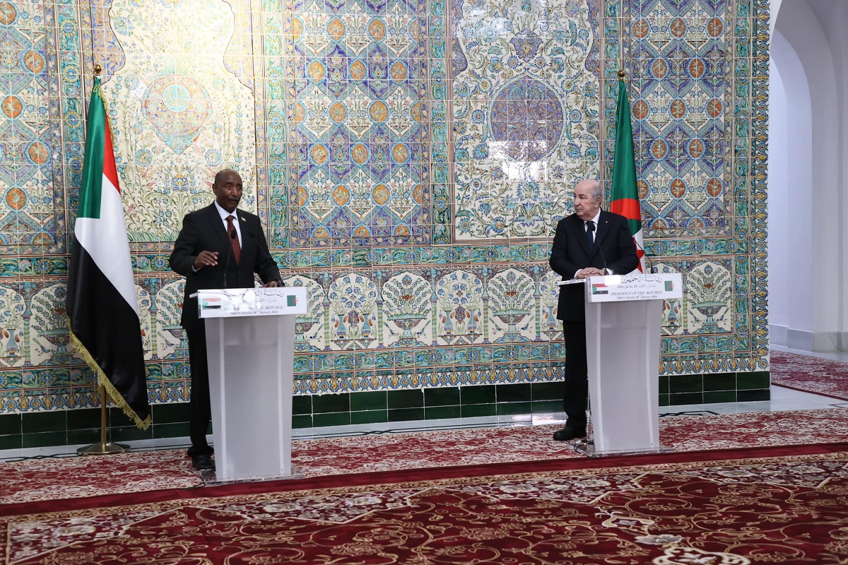 Dans une déclaration conjointe à la presse avec le président de la République, M. Abdelmadjid Tebboune, à l’issue de leurs entretiens au siège de la Présidence de la République, le général Al-Burhan a indiqué que le Soudan était « victime d’une conspiration ourdie de connivence avec des parties régionales et internationales et avec la complicité de suppôts qui conspirent contre leur peuple, mais la volonté populaire sincère finira par triompher et le Soudan se remettra debout grâce à Dieu, fort du soutien de son peuple et des âmes imprégnées de nationalisme dans le monde arabo-musulman ».