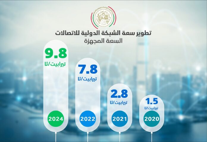 « Le ministre de la Poste et des Télécommunications, Me.Karim Bibi-Triki a annoncé, aujourd’hui le lundi 29 janvier 2024 de Tamenghasset, que dans le cadre du renforcement des capacités nationales en matière de la bande passante internationale, une nouvelle opération d’augmentation de la capacité équipée du réseau de télécommunications international de notre pays a été achevée, pour passer ainsi à 9.8 Tb/s, contre 7.8 Tb/s en 2022, 2.8 TB/s en 2021 et 1.5 Tb/s en 2020 », indique la même source dans un communiqué.