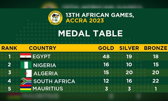 La participation totalise provisoirement, 57 médailles (15 or, 20 argent et 22 bronze), derrière le Nigeria qui s’empare de la seconde position, après les quatre médailles d’or que ses athlètes ont ajouté à la récolte de la délégation, lors des épreuves qui se poursuivent lundi à travers la ville ghanéenne. Le Nigeria possède, jusqu’à l’heure un total de 47 consécrations (22 or, 10 argent et 15 bronze) dans un classement dominé par l’Egyptequi caracole en tête, avec un impression total de 85 médailles (48 or, 19 argent et 18 bronze).