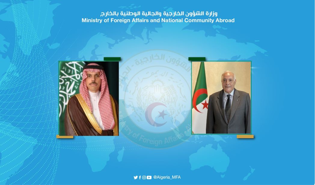Le ministre des Affaires étrangères et de la Communauté nationale à l’étranger, Ahmed Attaf, a reçu, jeudi, un appel téléphonique du ministre des Affaires étrangères du Royaume d’Arabie saoudite, Son Altesse le Prince Faisal bin Farhan Al Saoud, indique un communiqué du ministère.