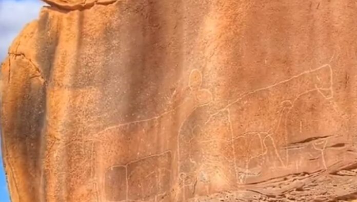 Selon M. Chouiha, ces gravures représentent notamment des animaux, dont le rhinocéros et des sortes d’hyènes rayées, connues sous le nom de chiens sauvages d’Afrique ou lycaons, présents, à ce jour, dans le parc national de l’Ahaggar et du Tassili.