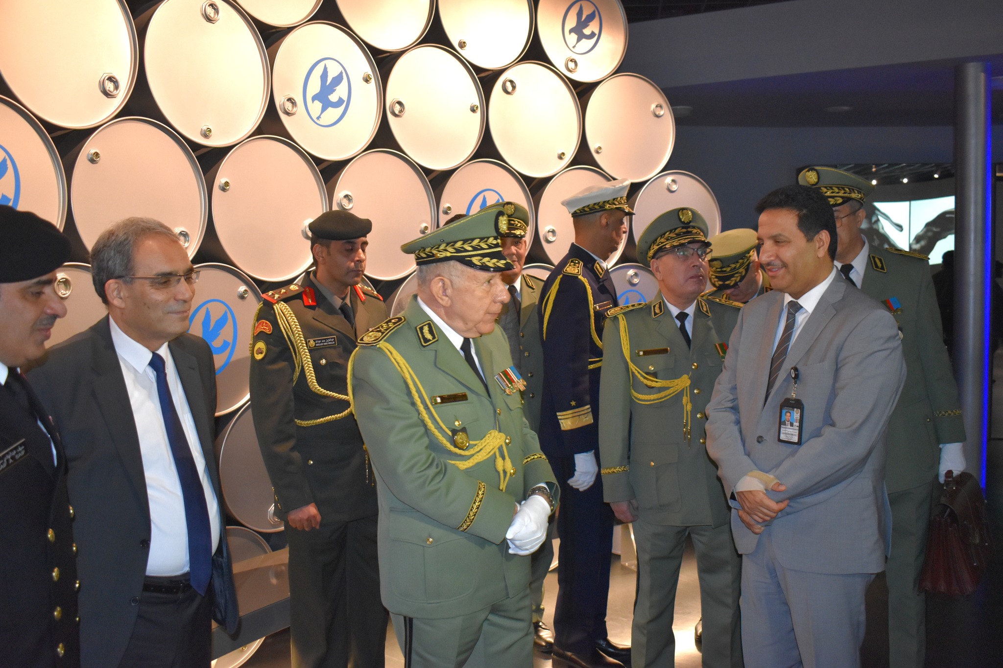Le Général d’Armée a visité « les différents pavillons, où il a reçu des explications exhaustives fournies par les responsables de cet événement, sur les différentes étapes de production du pétrole et les techniques utilisées dans l’extraction et le raffinage, depuis la découverte de cette ressource vitale dans l’Etat du Koweït en 1936 jusqu’à nos jours ».
