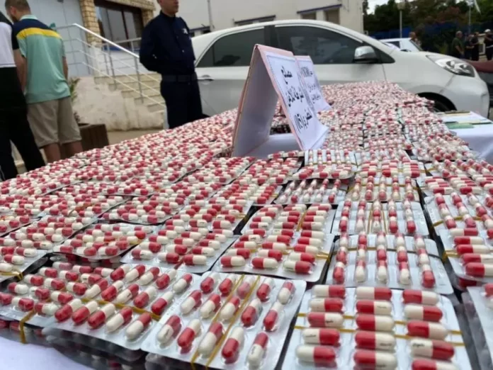 « En application de l’article 11 du Code de procédure pénale, le parquet de la République près le tribunal de Sidi M’Hamed à compétence territoriale étendue, porte à la connaissance de l’opinion publique que dans le cadre de la lutte contre les crimes de drogues et de blanchiment de leurs revenus criminels et après sa notification par le parquet de la République près tribunal de Cheraga, le pôle pénal spécialisé a traité une affaire relative à la saisie au niveau de la ville d’Ouled Fayet, d’une quantité de substances psychotropes, estimée à plus de 965.000 comprimés de type +Prégabaline+ », selon la même source.