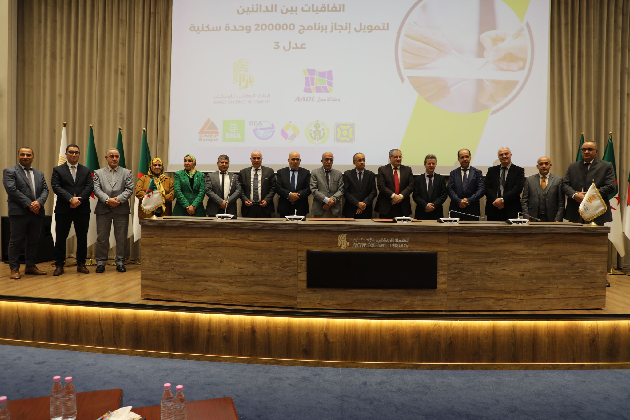 Signée par la Banque nationale de l’Habitat (BNH), la Caisse nationale d’épargne et de prévoyance (Cnep-Banque), la Banque nationale d’Algérie (BNA), la Banque extérieure d’Algérie (BEA), la Banque d’agriculture et du développement rural (BADR), le Crédit Populaire d’Algérie (CPA), la Banque de Développement Local (BDL), cette convention s’inscrit dans le cadre des préparatifs du lancement des travaux de réalisation du nouveau programme « AADL 3 », rapporte l’APS.