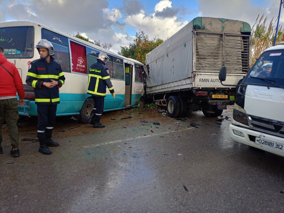 Le bus, qui assurait la liaison entre Skikda et Aïn Kechra, est entré en collision avec le camion, ce qui a causé des blessures à 21 personnes. Les victimes ont été secourues sur place et transportées à l’hôpital local pour recevoir des soins.