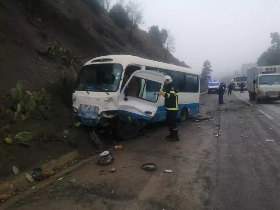 L’incident s’est produit sur la route nationale N°08, au lieu-dit Frikat Bouar, dans la commune de Tablat. Il a impliqué un bus de transport de voyageurs, assurant la ligne Tablat-Al Azizia, et un véhicule touristique.