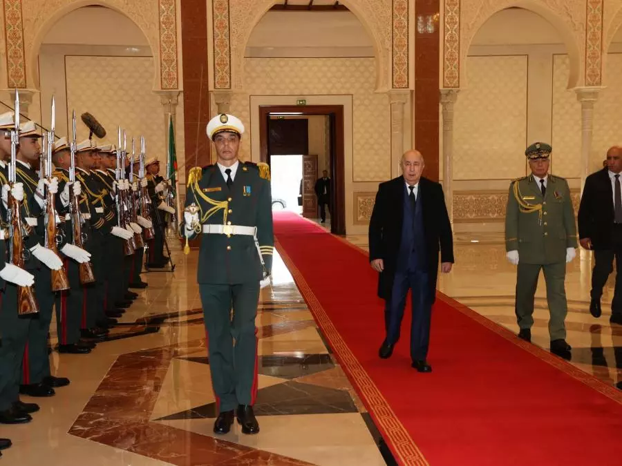 Après avoir écouté l’hymne national au Salon d’honneur de l’aéroport international Houari Boumediene, le président de la République a passé en revue une formation de la Garde républicaine qui lui a rendu les honneurs.