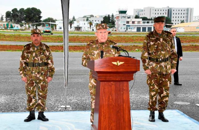 Lors de sa rencontre avec les cadres et les personnels du Commandement des Forces Aériennes, le Général d’Armée a prononcé une allocution d’orientation, qui a été diffusée par visioconférence à toutes les unités des forces aériennes, dans laquelle il a fait mention des exploits de la diplomatie algérienne, qui ont été réalisés à la faveur des orientations judicieuses de Monsieur le Président de la République, Chef Suprême des Forces Armées, Ministre de la Défense Nationale, au double plan régional et international, selon la même source.