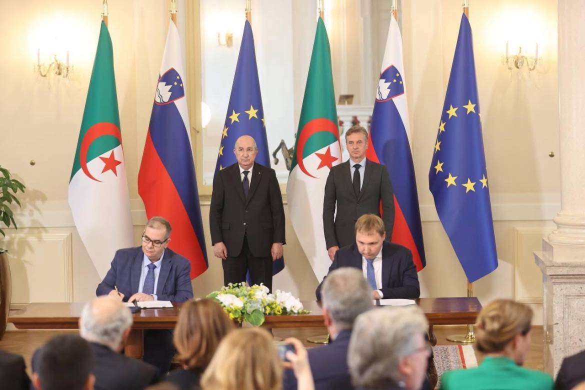 La signature du contrat s’est tenue au siège de la Présidence de la République de Slovénie, en présence du président Abdelmadjid Tebboune et du Premier ministre slovène Robert Golob.