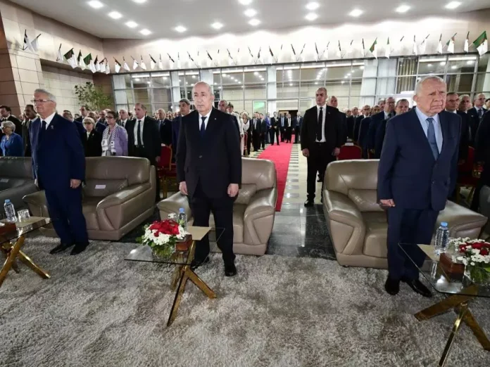 Ont pris part à cette cérémonie, qui s’inscrit dans le cadre des grandes traditions de l’Armée Nationale Populaire visant à commémorer les dates phares de notre glorieuse histoire et en hommage à nos vaillants martyrs, le Président du Conseil de la Nation, le Président de l’Assemblée Populaire Nationale, le Premier Ministre, la Présidente de la Cour Constitutionnelle par intérim, le Directeur de Cabinet de la Présidence de la République, le Secrétaire Général de la Présidence de la République et les membres du Gouvernement, et des Conseillers auprès du Président de la République ainsi que le Général du Corps d’Armée, Commandant des Forces Terrestres, le Secrétaire Général du Ministère de la Défense Nationale, les Commandants de Forces, le Commandant de la Garde Républicaine, le Commandant de la Gendarmerie Nationale, le Directeur de Cabinet auprès du Ministère de la Défense Nationale, le Commandant de la Première Région Militaire, les Chefs de Départements, les Directeurs et les Chefs de Services Centraux du Ministère de la Défense Nationale et de l’Etat-Major de l’Armée Nationale Populaire, aux côtés de hauts cadres de l’Etat en sus des personnalités nationales et de Moudjahidine et des membres du corps diplomatique accrédité en Algérie.