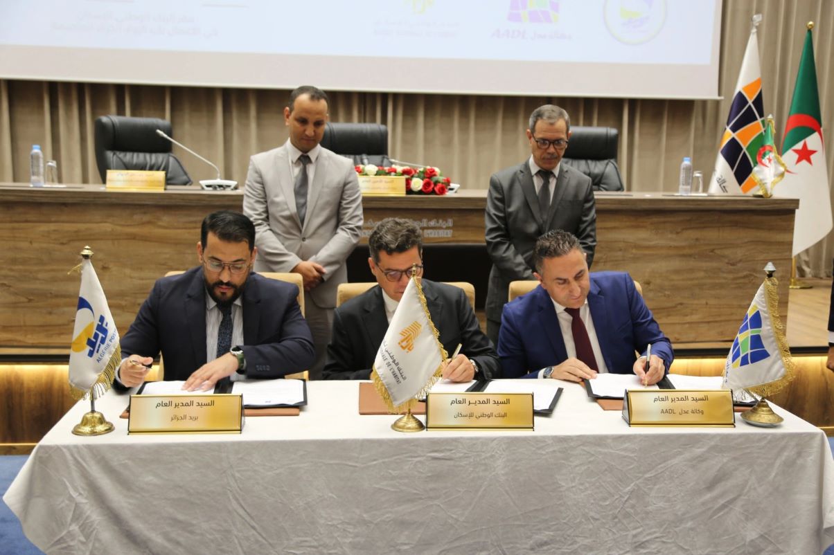 Une convention-cadre a été signée ce jeudi au siège de la Banque nationale du logement, entre l’Agence nationale pour l’amélioration et le développement du logement (AADL), Algérie Poste et la Banque nationale du logement.